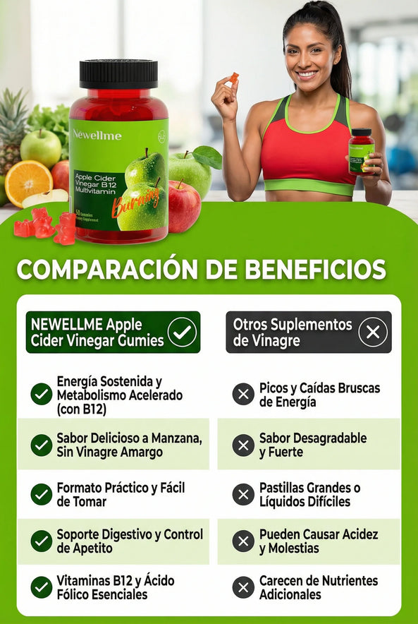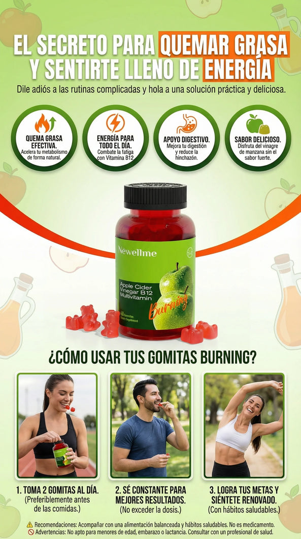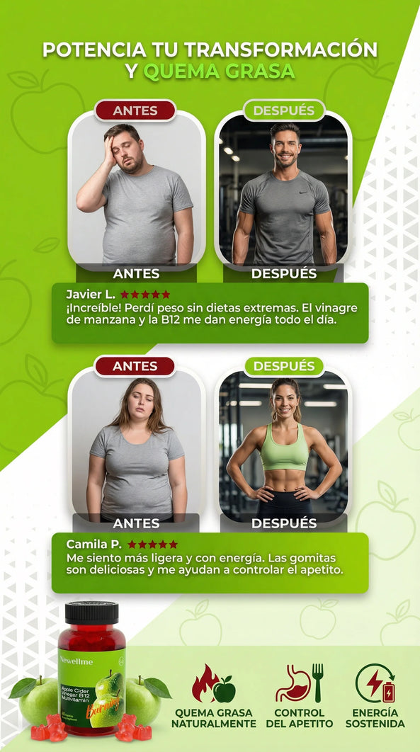Gomitas Detox de Vinagre de Manzana + B12 🔥🍎 Metabolismo, energía y digestión · 60 gomitas